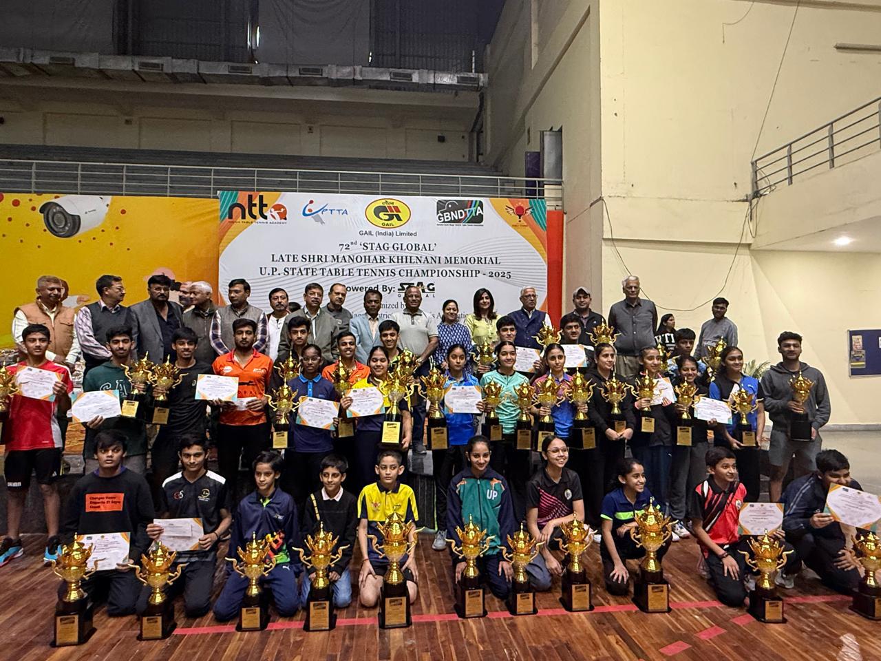 चीफ गेस्ट एस.एस. अग्रवाल, एग्जीक्यूटिव डायरेक्टर, गेल इंडिया लिमिटेड ने इनाम दिए और विजेताओं को 1,29,000/- रुपये का कैश प्राइज भी दिया गया। इस मौके पर अनीता अरोड़ा, नोएडा इंडोर स्टेडियम, सिक्योरिटी सॉल्यूशन (ओनर),अरुण कुमार बनर्जी, डायरेक्टर UPTTA, सुनील जोशी, श्याम कुमार, सेक्रेटरी, GBNDTTA और परवेज अली, आरएसओ भी मौजूद थे।