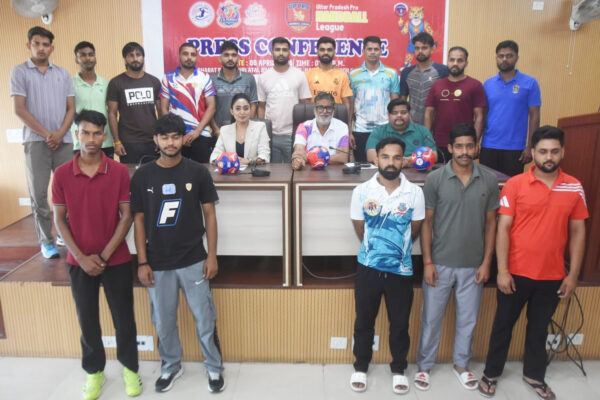 यूपी प्रो हैंडबॉल लीग के सीईओ डा.आनन्देश्वर पाण्डेय और संस्थापक व प्रबंध निदेशक अमित पाण्डेय ने आज प्रेस वार्ता में मैचों का कार्यक्रम जारी किया।