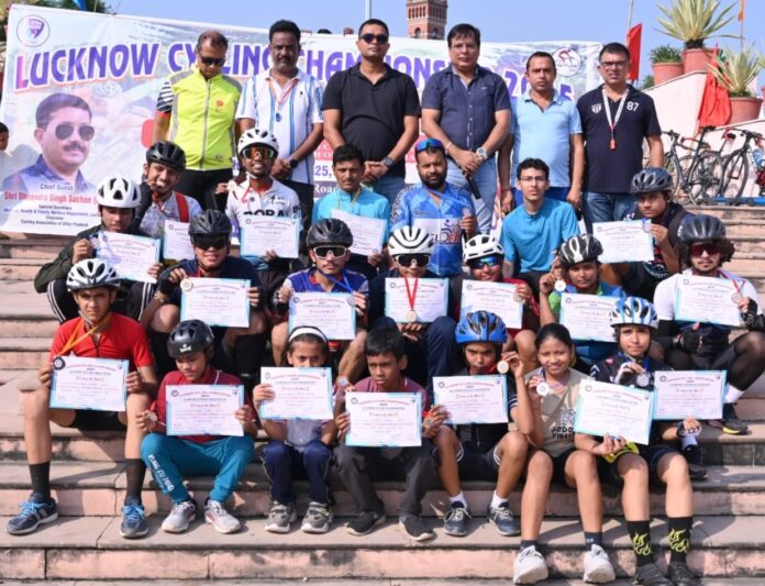 लखनऊ। लखनऊ साइक्लिंग एसोसिएशन के तत्वावधान में जिला साइक्लिंग चैंपियनशिप 2025 में हार्दिक मिश्रा, आराध्या बाजपेयी, सिद्धार्थ गुप्ता, काव्या चित्रांश, शौर्य सिंह, मयूर गुप्ता, यश मनराल, कुसुम राठौर ने विभिन्न स्पर्धाओं में स्वर्ण पदक जीते।