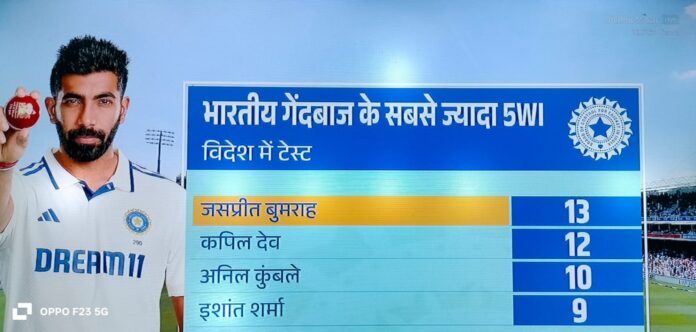 -बुमराह 5 विकेट लेकर विदेश में सबसे ज्यादा 13 बार यह कारनामा करने वाले भारतीय गेंदबाज बने