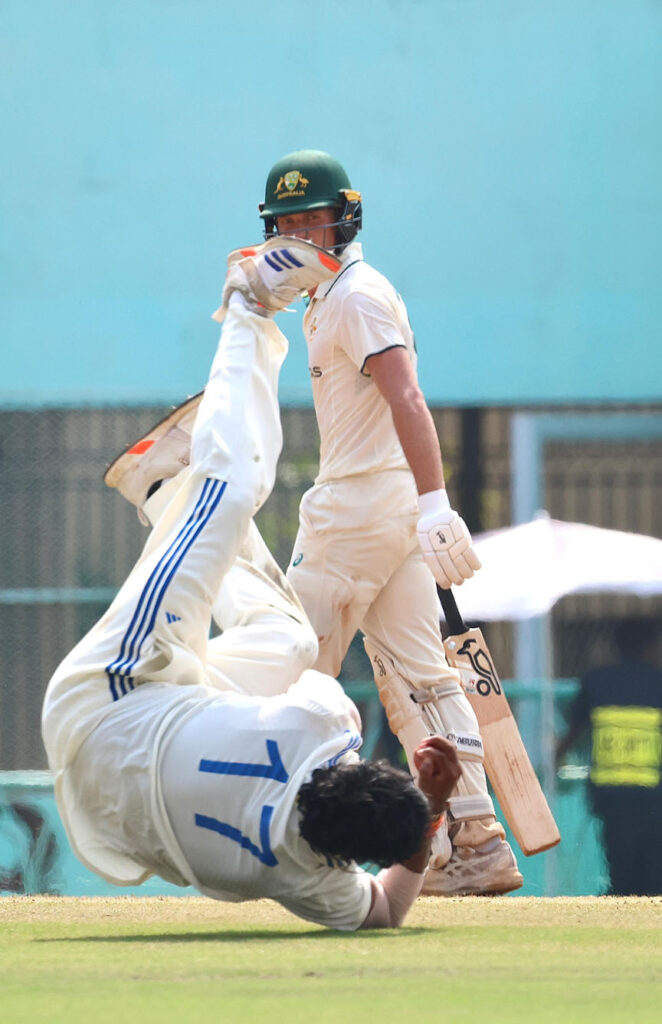 कूपर कॉनली (एक) को मोहम्मद सिराज ने बोल्ड आउट किया। जॉश फिलिपे ने कैंपबेल केलावे के साथ पांचवें विकेट के लिए 90 रन जोड़े। मानव सुथार ने जॉश फिलिपे (50) को आउट कर इस साझेदारी को तोड़ा।