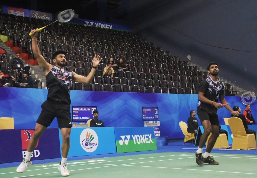 पुरुष युगल में पांचवीं वरीय एम.आर. अर्जुन व हरिहरन अम्साकरुनन की भारतीय जोड़ी ने भी जीत दर्ज करते हुए भारत के आयुष मखीजा व सुजय तंबोली को 21–11, 21–13 से हराया।