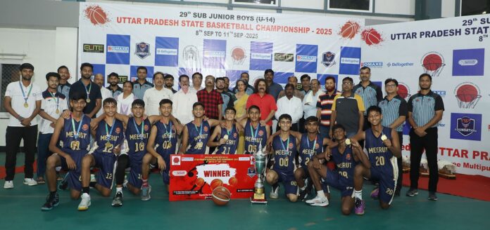लखनऊ। मेरठ ने 29वीं सब जूनियर बालक उत्तर प्रदेश राज्य बास्केटबॉल चैंपियनशिप 2025 में दमदार अटैक और बेहतरीन डिफेंस की बदौलत एकतरफा खेल दिखाते हुए विजेता ट्रॉफी पर कब्जा जमा लिया।