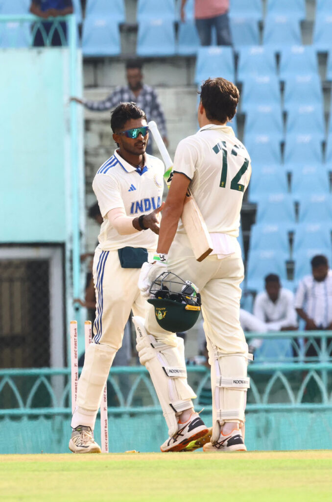 सीरीज के पहले मुकाबले में दोनों टीमों के बल्लेबाजों का दबदबा देखने को मिला। ऑस्ट्रेलिया ए की ओर से पहली पारी में 532 रन बनाए गए, जिसके जवाब में भारत ए ने भी दमदार प्रदर्शन करते हुए 531 रन बना डाले।