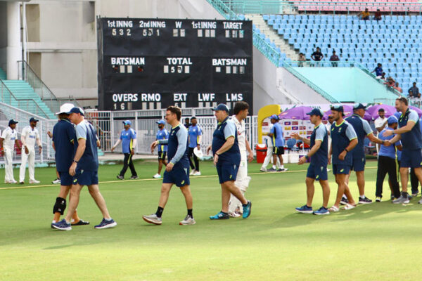 ऑस्ट्रेलिया ने अपनी दूसरी पारी में बिना कोई विकेट गंवाए 56 रन बनाए, जिसके बाद दोनों टीमों के कप्तानों ने हाथ मिलाकर मैच को ड्रॉ घोषित किया।