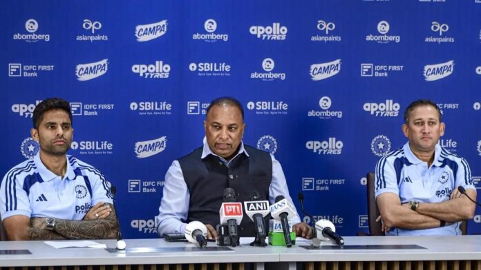 सूर्यकुमार यादव (कप्तान), अभिषेक शर्मा, संजू सैमसन (विकेटकीपर), तिलक वर्मा, हार्दिक पांड्या, शिवम दुबे, अक्षर पटेल (उपकप्तान), जसप्रीत बुमराह, हर्षित राणा, अर्शदीप सिंह, कुलदीप यादव, वरुण चक्रवर्ती, वाशिंगटन सुंदर, ईशान किशन।
